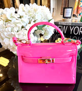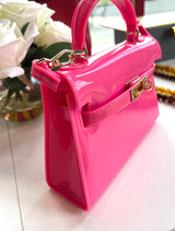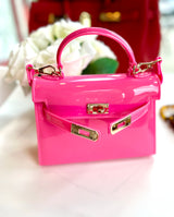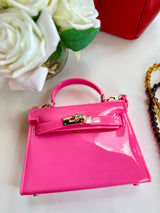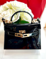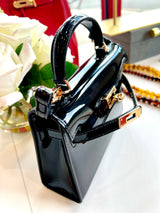 DESCRIPTION: Trendy Mini Crossbody Bag with removable strap. Top Handle with quality hardware. Gold turn lock closure.