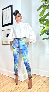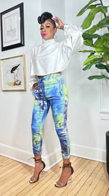 DETAILS: High Waist, Skinny tie-die pants. Elastic waistband with drawstring. Side pockets. Fabric has good stretch.