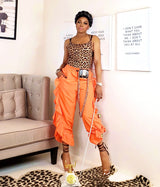 DETAILS: Windbreaker joggers. Side ruffle detail. Elastic waistband with drawstring. Elastic ankle. Side pockets. Fabric has no stretch. Pants are Full Length