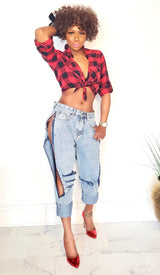 DETAILS: Low Rise shredded jeans. Completely open sides. Lace up back with Crystal Drawstrings. Zipper front. Adjustable cuffs.