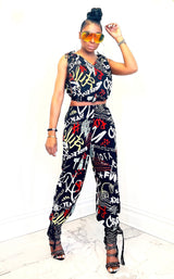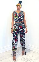 DETAILS: Graffiti print jogger pants. Elastic waistband and hem. Regular fit. Fabric has no stretch.